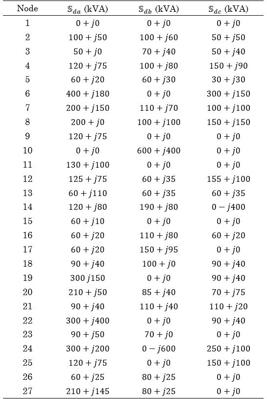 Table 4 presents the per-phase complex power consumption of the 35-bus system.