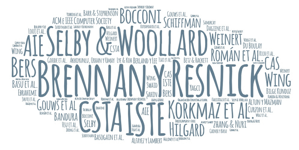 Also, one important aspect considered in the analysis was the most cited authors in the analyzed articles (see Figure 7). Prominent authors include Brennan and Resnick, Selby and Woollard, the International Society for Technology in Education (ISTE), the Computer Science Teacher Association (CSTA), Román et al., and Korkmaz et al. The latter authors are notable references because the instruments they proposed—the Computational Thinking Test (CTt) and the Computational Thinking Scale (CTS)—are frequently employed for CT measurement.