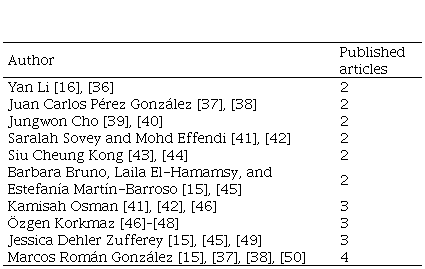 Considering the authors of the 52 articles and those most cited within them, Marcos Román-Gonzaléz and Özgen Korkmaz were found to be at the top of both lists, demonstrating their extensive research experience in CT assessment.