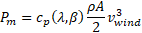Las turbinas eólicas se describen a partir de cuatro submodelos para la velocidad del viento, el rotor, el eje y el generador. En las simulaciones dinámicas de sistemas de potencia, resulta beneficioso emplear un modelo para el rotor de la turbina eólica que trate el viento como un valor constante único (en lugar de un campo de velocidades del viento) y descarte la geometría específica de las aspas [20]. Esto conduce al modelo cuasiestático del rotor, donde la potencia (Pm.) contenida en el viento tiene una relación algebraica con la velocidad del viento (vwind ), como se presenta en (1)