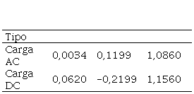 Donde, p0 corresponde a la potencia activa cuando el voltaje de suministro es de 1 p.u. v es el voltaje de operación, vn. es el voltaje nominal p1 son los coeficientes de impendacia constante,p2 son los coeficientes de corriente constante y p3. son los coeficientes de potencia constante. Se usan valores diferentes de potencias para cada tipo de carga: resistencia constante, corriente constante y potencia constante [21]. Los parámetros de (11) que modelan cada estación de carga de vehículos eléctricos se proporcionan en la Tabla 4, y fueron determinados a través del método de mínimos cuadrados como se menciona en [21].