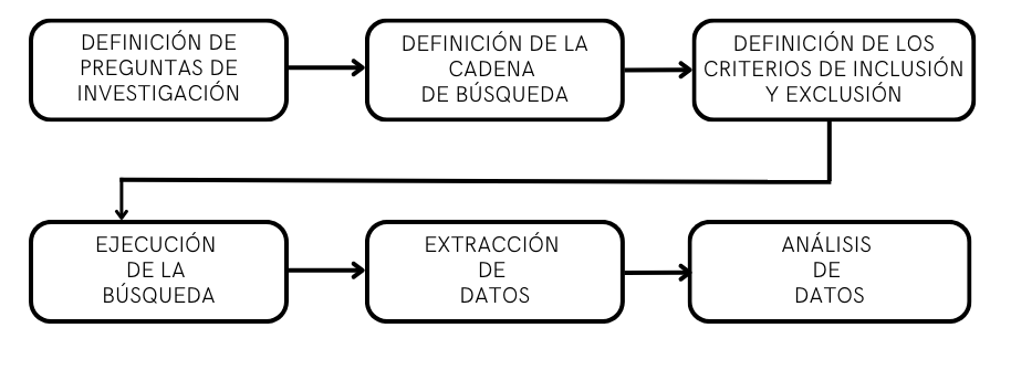Par el MSL se sigue el proceso sistemático, ordenado, metódico y replicable propuesto por [25]. Para ello, el estudio se dirigió por las etapas expuestas en la Figura 2.