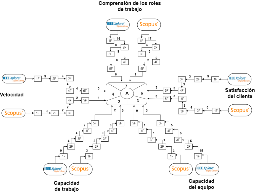 La cadena de búsqueda se diseña con base en el propósito del estudio. La cadena emplea el operador booleano (AND) para la conexión de los términos. La ecuación de búsqueda usada es: measurement AND [Factor] AND agile team.