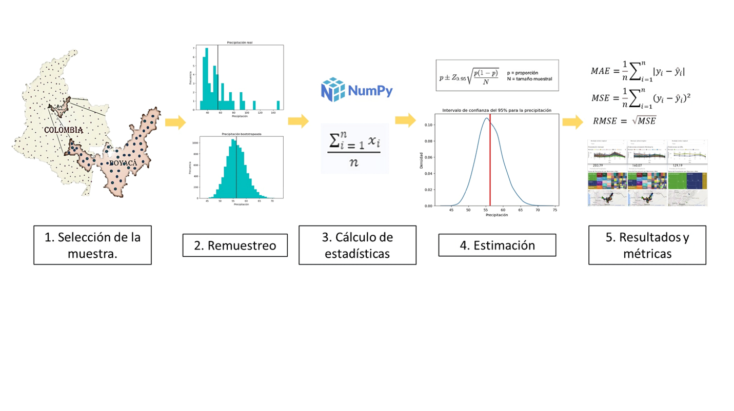 El proceso de aplicación de la simulación a los datos de precipitación consta de varios pasos claves descritos a continuación.