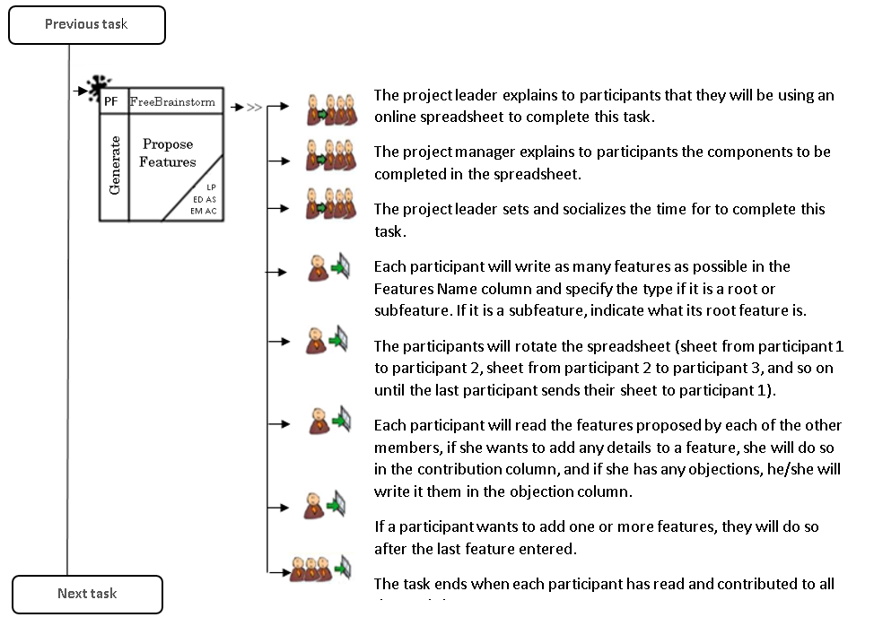 This paper presents one of the tasks from CINDERELLA. The fifth task in our proposal is called "Propose features." Figure 3 presents the model for this task, and Table 5 corresponds to the task description table.
