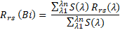 Where λ1 and λn are the lower and upper limits of the band (Bi being i = 1, 2... 36). S(λ) is the spectral response function [48]. Rrs(λ) signal collected in the field with the FieldSpec UV/VNIR ASD HandHeld spectroradiometer.