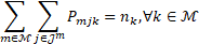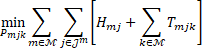 (4)Nótese que (3) corresponde a la capacidad de generación de la j-ésima unidad de la m-ésima microrred, con 𝑃𝑚𝑖𝑛𝑚𝑗 y 𝑃𝑚𝑎𝑥𝑚𝑗 como los límites de potencia del generador. En (4), ∑ 𝑚∈ℳ ∑ 𝑗∈𝒥𝑚 𝑃𝑚𝑗𝑘 es la potencia total que recibe la microrred 𝑘. Luego, las M restricciones en (4) representan la demanda que se debe suplir, siendo 𝑛𝑘 la potencia total que se debe despachar a la k-ésima microrred. En (2), ∑ 𝑚∈ℳ ∑ 𝑗∈𝒥𝑚 [𝐻𝑚𝑗] representa el costo total de generación del sistema y ∑ 𝑚∈ℳ [∑ 𝑗∈𝒥𝑚 𝐻𝑚𝑗] el costo total de transmisión.