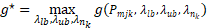 (5)Si se define 𝑓⋆ como el óptimo del problema original (2); sujeto a (3) y (4), se tiene que, para cualquier combinación de 𝜆𝑙𝑏,𝜆𝑢𝑏,𝜆𝑛𝑘, existe un 𝑔 ≤ 𝑓⋆. Por lo tanto, el objetivo es buscar la solución g más cercana al óptimo. Para lograr lo anterior, se establece el problema dual (6):
