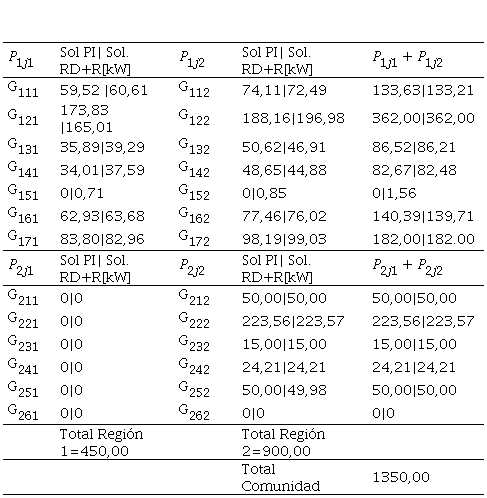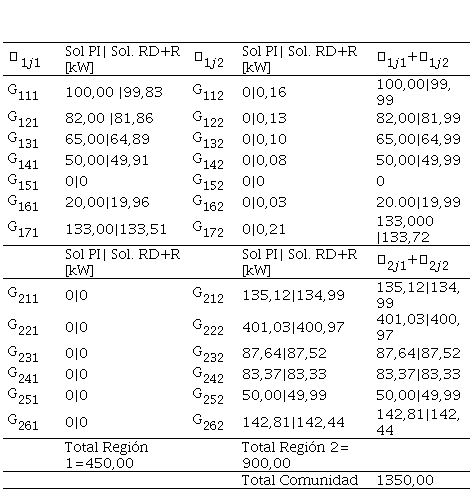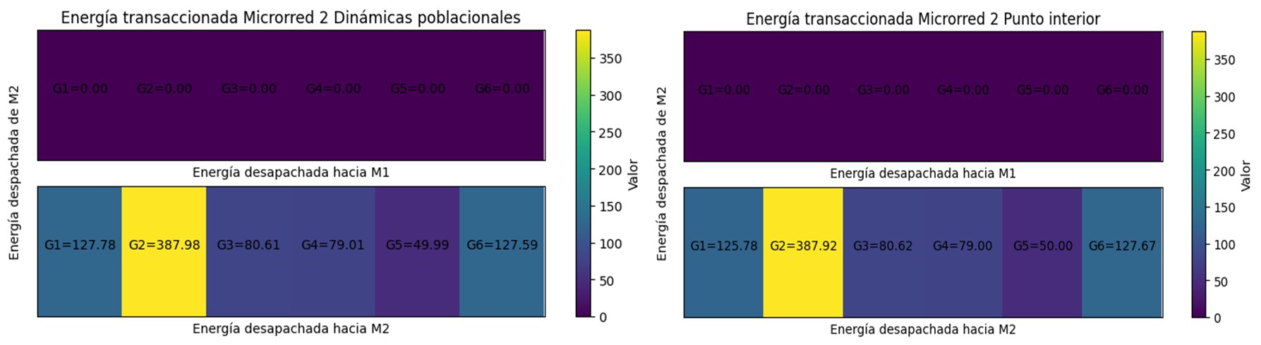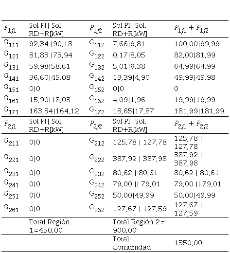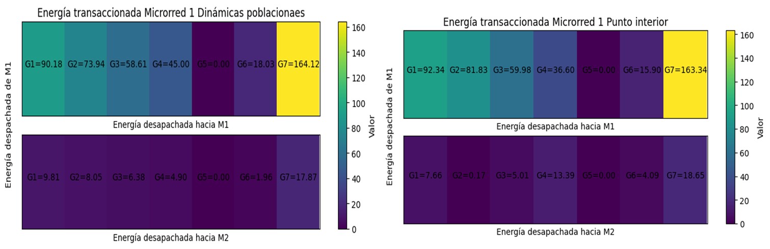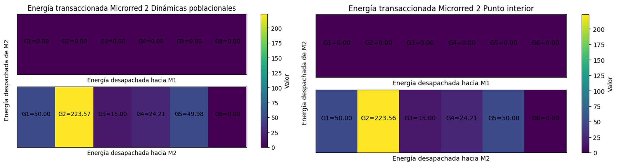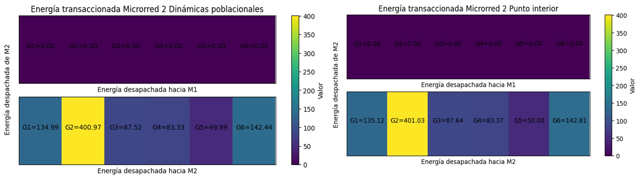 Como se observa en la Tabla 5, al hacer la sumatoria de las potencias que llegan a cada microrred se da cumplimiento a la restricción de (4) y, además, las potencias despachadas por cada generador están dentro de los límites, cumpliendo con (3).