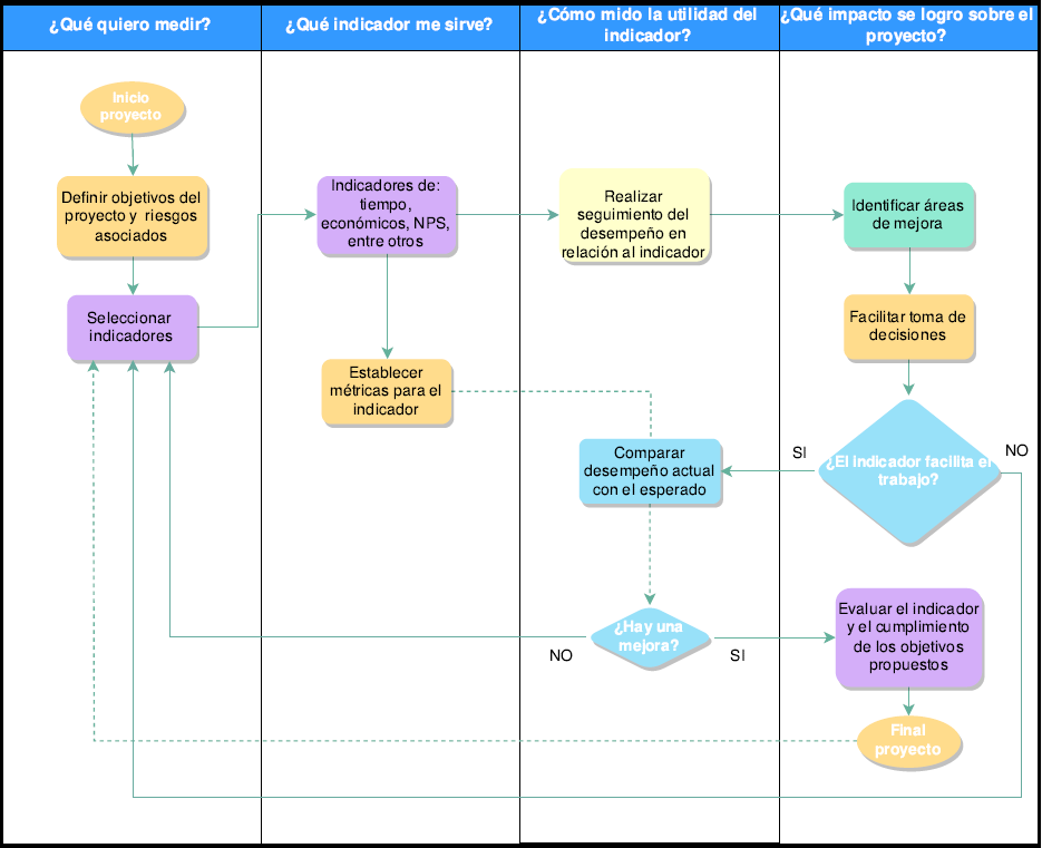 El planteamiento de estos indicadores está enfocado en poder realizar el análisis detallado de cada fase del proyecto. Los resultados obtenidos permitirán tomar decisiones dirigidas a reducir los tiempos, mejorar la calidad de los entregables y disminuir los costos, lo que contribuirá a mejorar la rentabilidad del proyecto [5].