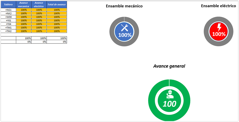 Mediante el análisis del juicio de expertos, se identificaron los puntos críticos que deben cumplirse para completar con éxito el ensamble de los tableros, lo que sirvió como base para el desarrollo de un Dashboard. Esta herramienta, se diseña para abarcar tanto los aspectos mecánicos como eléctricos del ensamble, facilitando el seguimiento del avance en el área, permitiendo un control preciso de las tareas completadas y aquellas que requieren atención adicional o corrección.