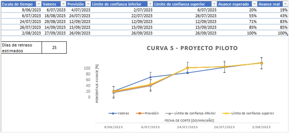 Como fue mencionado en el anterior apartado, se buscaba un proyecto piloto que cumpliera con ciertas características para obtener datos verídicos y útiles que respaldaran su aplicación en otros proyectos de la organización. En este sentido, se optó por un proyecto programado para ejecutarse entre los años 2023 y 2024, con una duración estimada de ocho meses, centrado en aspectos de comunicaciones, distribución y control, como se puede observar en la Tabla 7.