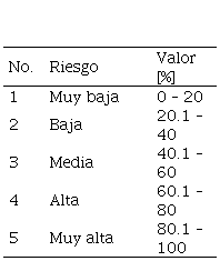 La matriz de impacto que se observa en la Tabla 11, debe interpretarse considerando la evaluación de cada factor en una escala del 1 al 5 como se observa en la Tabla 12. La columna de riesgo inherente en la matriz refleja una combinación única de factores y su potencial impacto en el proyecto con base en la probabilidad de que esto ocurra como se observa en la Tabla 13. Los valores numéricos asignados a esta columna indican el nivel de riesgo o importancia de cada factor, con 1 representando el menor impacto y 5 el mayor. Se requiere una atención especial en las celdas con valores más altos, ya que señalan áreas críticas que demandan prioridad en la gestión del riesgo. En este punto, es crucial realizar un análisis detallado para determinar las estrategias de mitigación adecuadas. Se debe evaluar si la implementación de medidas para mitigar estos riesgos resulta favorable en términos de costo-beneficio, o si es más prudente dejarlos sin intervención.