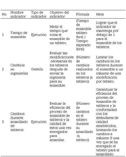 De igual forma se realiza un análisis de indicadores para la etapa de ensamble del proyecto como se puede observar en la Tabla 4.