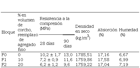 Basado en lo anterior, se recomienda el uso de un 10 % en volumen de corcho como reemplazo del agregado fino en la mezcla para obtener un bloque estructural con características de confort térmico.