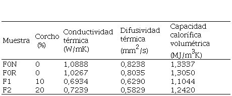 Con el objeto de reducir la conductividad térmica de los especímenes de concreto se empleó corcho; este material presentó un módulo de finura de 3,59, y dadas sus características físicas un porcentaje de absorción bastante elevado (61,87 %).