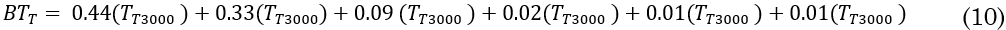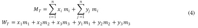 La ecuación que se determinó fue con base en el trabajo total realizado durante el proceso de molienda, según los tratamientos estudiados y del proceso total de sus fracciones, como se muestra en (6):