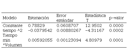 Los datos obtenidos del proceso de trituración arrojaron valores efectivos en función del tamaño de la astilla para construir un nuevo modelo matemático propio de la especie, como se evidencia en (5):