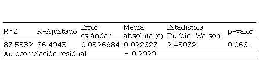 Con esta ecuación se puede determinar el tamaño de la partícula y la cantidad necesaria para el aprovechamiento agroindustrial de la biomasa forestal. Sin embargo, según (9) y (10), la importancia radica en conocer las propiedades del equipo para diseñar el prototipo de la biomasa, lo cual afecta su eficiencia con una probabilidad de ocurrencia menor al 0.01 % y con un nivel de confianza del 99 %, con un coeficiente de variación de 6.59 %, lo que permitió contar con esta confiabilidad en el proceso de molienda de la biomasa forestal a escala de laboratorio, similar al modelo ajustado en unidades de nanómetros (nm) del sistema de cribado que se muestra en (11) [55].