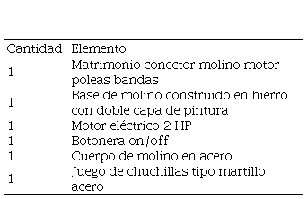 En vista que no cuenta con equipos de triturado de biomasa forestal a pequeñas escalas de laboratorio, se prevé que este diseño y análisis de la modelación y simulación computacional, llevado a cabo en un taller mecánico de la parroquia de Puyo -cabecera cantonal de Pastaza- para la construcción del molino que servirá en la trituración de la biomasa forestal, sea exitoso, esto luego de realizar los ensayos y las correcciones mecánicas. Basados en aspectos normativos relacionados con los materiales y los métodos para su construcción, durante las pruebas el equipo funcionó correctamente. Lo anterior se logró gracias a la colaboración de un grupo de personas que contribuyó con el diseño tipo laboratorio, el cual servirá nacional e internacionalmente para investigaciones del sector industrial, como se muestra en la Tabla 1.