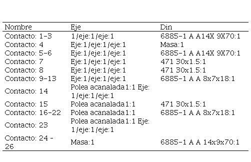 La Figura 2 muestra la densidad de la masa de (7.85 g/cm3), con un límite elástico (207 MPa), y una resistencia máxima a la tracción (345 MPa), el módulo de Young (210 GPa), el coeficiente de Poisson (0.3 μL), así como el módulo de corte (80.76 GPa), que cuenta con una polea acanalada 1, eje de la masa en acero suave y un nuevo modelo de Young (220 MPa), que incluye la relación de Poisson (0.28 μL), el módulo de corte (86.27 GPa) y el nombre de pieza: DIN 6885-1 AA8X7X18, DIN 6885-1 AA 14x9x70, DIN 471 30x1.5, respectivamente; igualmente, se presentan condiciones de operación: tipo de carga (magnitud: 196000.000 N mm, vector X: 0.000 N mm, vector Y: 0.000 N mm, vector Z: -196000.000 N mm). Basados en densidad, masa, módulo, resistencia, relación de Poisson, módulo de corte, estos materiales muestran su máxima elasticidad y resistencia a la tracción bajo el modelo de Young comparado con el modelo de Poisson [45].