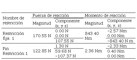 Según el análisis de las reacciones del motor y las fuerzas de magnitud aplicada a cada componente de los ejes, estos soportan el movimiento y el momento, tal como se menciona en la Tabla 5.