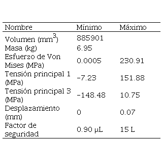 En la Tabla 6 se muestran los esfuerzos principales que soporta el equipo para producir el triturado de la biomasa forestal.