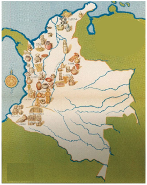 La región americana, donde la industria del oro alcanza sin duda, su más grande desarrollo en la época precolombina, es la que corresponde actualmente a Colombia y a la República de Panamá. En todo este vasto territorio, las tumbas aborígenes son tan ricas en objetos de oro, que la búsqueda y excavación de estas sepulturas constituye allí una profesión extendida y a menudo bastante lucrativa (Rivet 1948, 22).