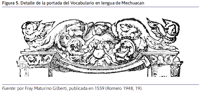 La historiografía reciente ha producido varios trabajos sobre grutescos novohispanos, una de las investigadoras pioneras del tema fue Isabel Estrada de Gerlero (1973, 1979, 2004).3 Brenda Chávez Molotla (2013, 2018) dedicó su tesis de licenciatura y maestría a este tema, en su trabajo de 2013 realizó un recorrido por la historia del grutesco, su implantación en el arte novohispano, así como la presencia de algunos patrones en el centro de lo que hoy es México. Para ello visitó una gran cantidad de conventos y realizó comparativas muy sugerentes. Este trabajo tuvo continuidad en su tesis de 2018 en donde identificó algunos grabados que dieron origen a grutescos en varios conventos como Zinacantepec, Epazoyucan, Zempoala, etcétera. Sus aportaciones son sustantivas en la identificación de fuentes visuales.
