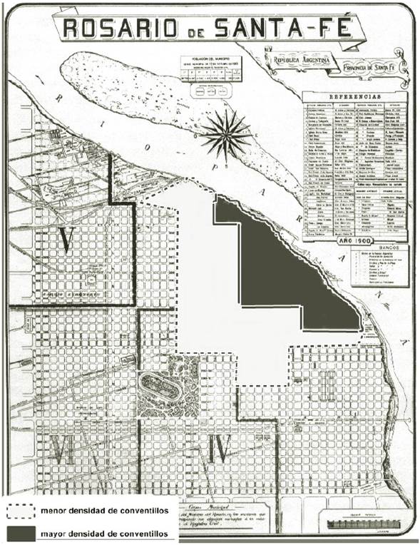 [...] la citada disminución en número de conventillos no ha hecho más que trasponer los términos del problema. La venta de lotes por mensualidades ha facilitado la ejecución de una o dos piezas precarias, donde una y hasta dos familias viven hacinadamente en una proporción de 4, 8 y 10 y más personas por pieza. Vemos, pues, que los inconvenientes provocados por el conventillo continúan en la vivienda aislada, nada más que virtualmente y éste casualmente es el desagradable espectáculo que ofrecen muchos de los suburbios rosarinos, que llegan a convertirse en verdaderos focos epidémicos [...] (Guido 1936, 123-124).