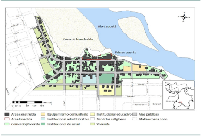 Uno de los aportes de este artículo es profundizar sobre las formas en que el conflicto armado se expresó en procesos como la expansión urbana y la gestación de barrios. Sin embargo, consideramos el conflicto armado como uno entre varios factores que han configurado y transformado la forma urbana del municipio. Junto con este fenómeno, examinamos otros aspectos como el impacto de las dinámicas hídricas del río Caquetá, los cambios institucionales y políticos del municipio, y el papel de actores gubernamentales y comunitarios. Al describir y analizar la expresión urbana de estos factores adoptamos una perspectiva morfológica, la cual parte de la premisa de que cualquier lectura sincrónica o presente del espacio social requiere un análisis diacrónico -histórico- que dé cuenta de las fuerzas que lo han moldeado (Lefebvre 2009, 235). Con este fin, combinamos análisis cartográfico e histórico con historia oral producto de talleres con líderes barriales.