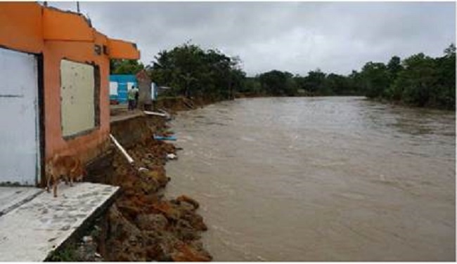 En los años 92 o 93 el río pasaba a muchos metros de aquí hacia allá, y cuando el señor Jairo Casanova fue alcalde, en el 97, hubo un desborde del río y pues el río nos acosó.16