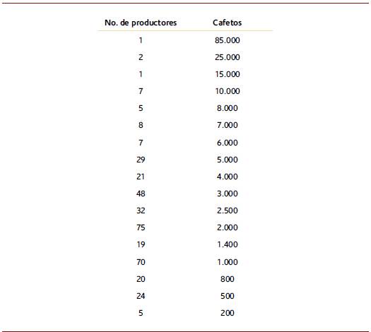 A partir del dinamismo desprendido del establecimiento del mercado de tierras en Sevilla, agenció una importante circulación de tierra hacia una distribución equitativa y democrática de la misma. Bajo este contexto de oportunidades, los actores obtuvieron acceso a la tierra mediante diversos mecanismos. Lo cual generaría un cambio en la estructura de la tenencia de la tierra que se había concebido durante varios siglos en el Valle del Cauca, la ruptura se dio en el área distribuida y el volumen de las operaciones perpetuadas, lo que resultó en la creación de un poblamiento de campesinos, vinculado mayoritariamente a las actividades agrícolas. Esta distribución como la estructura predominante, también se puede vislumbrar en los datos estadísticos de poblamiento de la época, donde existía 374 caficultores sevillanos predominando la producción minifundista, como se puede identificar a continuación en la tabla 4.