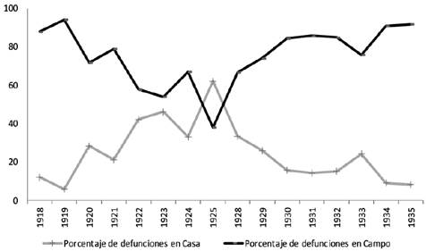 La mortalidad infantil en la Sección de Oriente era más elevada que la informada en la sede urbana del Hospicio de Bogotá (figura 1).