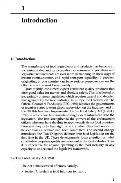 The pattern is preceded by an introductory paragraph contextualizing the food industry: i.e. "The manufacture of food [...]has become [...] a demanding occupation as consumer expectation and legislative requirements are ever more demanding."
