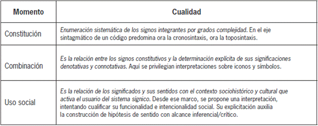 Incluso, la semiótica misma aporta un modelo comparable con las apuestas que se esbozan en los estudios del discurso. Todo esto tiene operatividad si se piensa en la doble naturaleza del lenguaje en sus orbes denotativo y connotativo; donde el primero da cuenta del lenguaje centrado y jerarquizado (lo literal), mientras el segundo es el lenguaje motivado por lo deconstructivo y diseminador o entrópico, puesto que permite que se fuguen cadenas significantes y, por tanto, sentidos múltiples gracias a los mecanismos metafórico/metonímicos. Visto esto así, se genera un esquema operativo (Klinkenberg, 2006) como el que se detalla en la tabla 1.