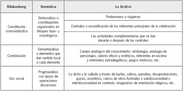 Algunas plataformas teóricas permiten pensar, en primera instancia, en la inclusión de lo festivo dentro del enfoque folclórico, si entendemos que el folclor es el rostro más visible de los fenómenos culturales populares de una colectividad. Es que, a través de las fiestas sus participantes, sin ninguna restricción social ni étnica, exteriorizan prácticas sociales híbridas, y también vivencias de su devenir, las cuales se pueden describir para inferir de estas acciones los "rasgos de la cultura popular tradicional de un determinado sitio o región" (Pereira, 2009, p. 138).