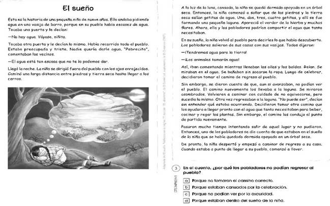 Antes de presentar los resultados, se muestra como ejemplo el análisis de dos ítems de relación causal. Uno de un texto continuo (cuento) y otro, discontinuo (historieta). El texto de la pregunta de la Figura 1 se presenta en el anexo 1.