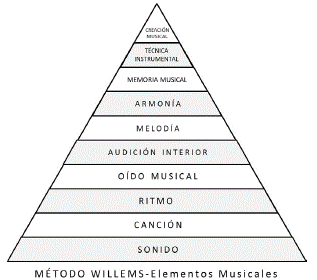 Desde esta perspectiva, la educación del oído se convierte en pilar de su método y la audición interior, generadora de capacidades mentales para improvisar y crear música, facilitará el camino hacia una interpretación comprendida, personal, sensible y fidedigna (Willems, 2001).