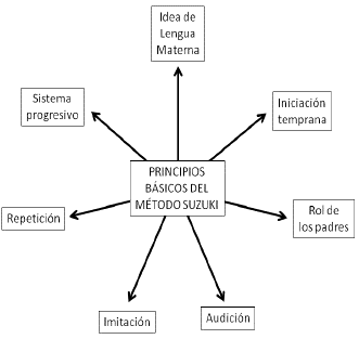 En base a esto, el propio Suzuki (2004) afirmaba que, si los métodos educativos de la lengua materna se utilizaran en el aprendizaje de la música, las capacidades musicales del niño tendrían un desarrollo similar a las que se dan en la adquisición del lenguaje, y señalaba como puntos sustanciales de su método los siguientes axiomas: