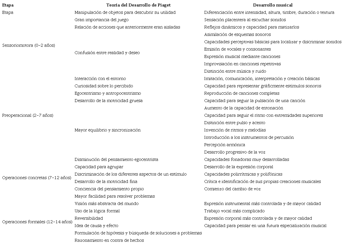 Desde este mismo punto de vista, Saffran et ál. (1999), y Herrera y Lorenzo (2006) indican que aprender un lenguaje requiere aprender los elementos básicos necesarios para la construcción de palabras, de sílabas y de fonemas y, aunque los componentes musicales son diferentes de los del lenguaje, el proceso básico de aprendizaje puede ser similar.