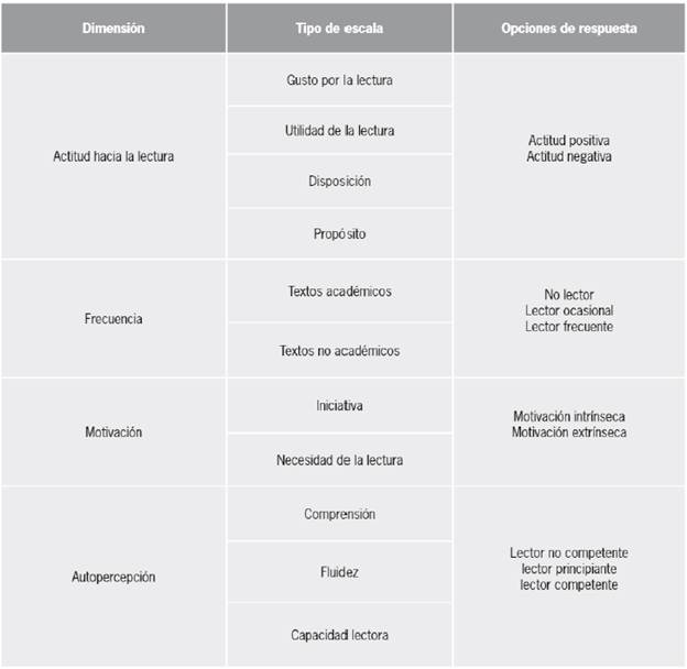 Para categorizar a los lectores del programa estudiado, se acudió a la clasificación de los lectores de Fatiloro et al. (2017) mencionada en el apartado anterior. Dicha clasificación se articuló con las dimensiones establecidas en el test de autorreporte.