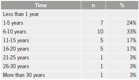 In terms of the participants, fifteen teachers had an MA degree, fourteen a BA, and one a specialization, as their highest educational level. Their teaching experience is presented in Table 3, while some of their assessment practices can be seen in Table 4, both with rounded percentages.