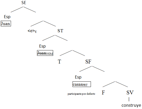 De acuerdo con esto, una oración como Juan construye casas tendría la siguiente estructura: