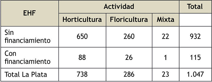 La Plata es una región donde la producción de hortalizas es hegemónica, conformando lo que se conoce como el Cordón Hortícola Platense (CHP), aunque también es uno de los principales territorios en la producción florícola (Cieza et al 2015). De acuerdo con los datos disponibles del Censo Hortiflorícola de la Provincia de Buenos Aires (CHFBA, 2005), en el Partido de La Plata existían 1.047 Explotaciones Hortiflorícolas (738 dedicadas exclusivamente a la horticultura, 286 a la floricultura y 23 mixtas), que abarcaban una superficie total de 5.308 hectáreas.