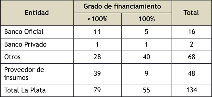 Ante este contexto, desde 2005 se desarrolló en La Plata y alrededores una experiencia de financiamiento a través de microcréditos conocido como Banco Social, que otorga créditos a tasa subsidiada y garantía solidaria a grupos de productores con necesidades de inversión, pero sin posibilidad de acceso al crédito formal. Esta experiencia es valorada positivamente por los productores ya que en promedio, les aportaba más del 50% de los requerimientos de financiamiento de la campaña (Barros et al. 2015) . No obstante, aunque la cantidad de productores que participan del proyecto creció desde sus inicios, continúa representando un canal acotado de financiamiento si se considera al territorio en su totalidad (lo cual no le quita mérito a la iniciativa).