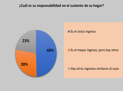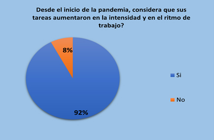En otro nivel, datos relevantes que surgieron en el proceso de investigación a nivel nacional, señalan que el porcentaje de enfermeras y enfermeros que son sustento de hogar es elevado y desde el inicio de la crisis sanitaria las tareas laborales aumentaron enfáticamente (Gráfico 1 y 2)