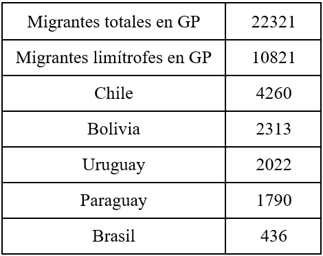 No obstante, y alejándose bastante de los números que se registraron en la provincia en general, en el partido de General Pueyrredon, las migraciones más relevantes eran las que provenían de Chile. En segundo lugar, se encontraban los migrantes provenientes de Uruguay y luego los de Paraguay. En cuarto lugar, estaban quienes habían arribado desde Bolivia (INDEC,2001) Tabla 1..
