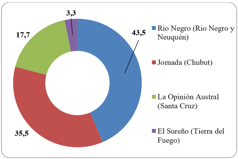 En consecuencia, el recorte del análisis de los diarios generalistas que conformaron la muestra de la presente investigación, se centra en 4 diarios de la Patagonia Argentina: “Río Negro” para las provincias de Río Negro y Neuquén, “Jornada” para analizar Chubut, “La Opinión Austral” para relevar Santa Cruz y “El Sureño” en el caso de Tierra del Fuego, Antártida e Islas del Atlántico Sur.