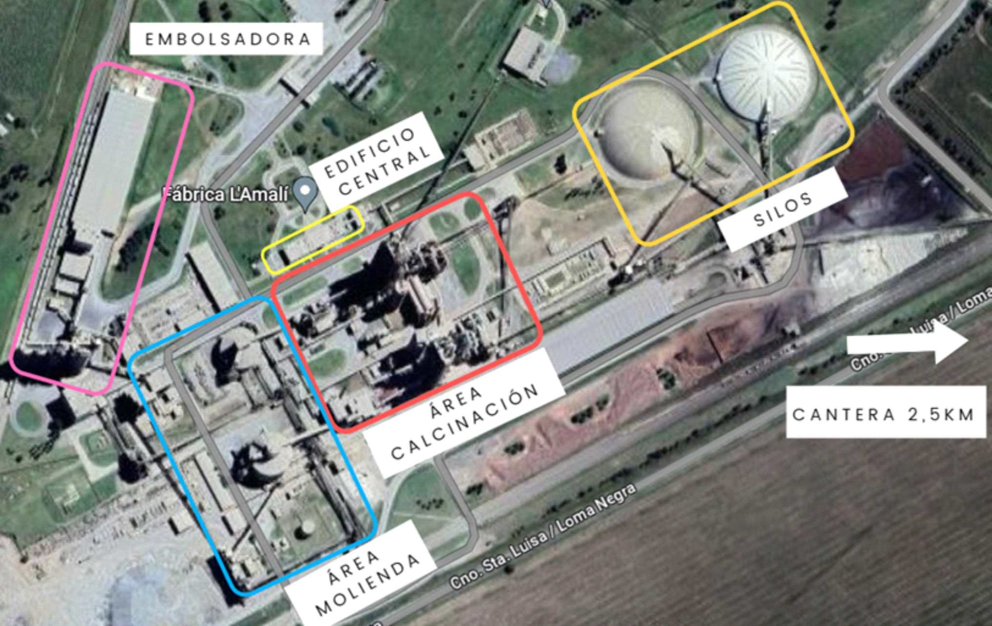 El camino que conduce a L’Amalí, el complejo cementero con mayor capacidad productiva de Loma Negra, es agradable. El pavimento liso y pintado, la señalización visible. Desde la localidad de Loma Negra -o Villa Fortabat-, llegué en pocos minutos en un vehículo que contrastaba con la prolijidad exterior. La portería y el tramo que caminé hasta la entrada del edificio central del complejo, mantenían la meticulosidad en la jardinería, la pintura del pavimento y la señalización. Mi primera impresión de L’Amalí fue buena porque era un espacio en el cual me sentí a gusto y lo reafirmé al ingresar al edificio: sus ventanales dejaban entrar la luz solar al amplio hall de entrada y se reflejaba en el piso blanco. Asimismo, no fue solo la materialidad del espacio lo que me hacía sentir bien; mi visita a L’Amalí contenía sentidos propios que se expresaban en sentimientos optimistas vinculados, principalmente, al avance de mi trabajo de campo. Siguiendo a Joan Nogué (2015), interactuamos emocionalmente con los lugares: los dotamos de significados y nos despiertan sentimientos.